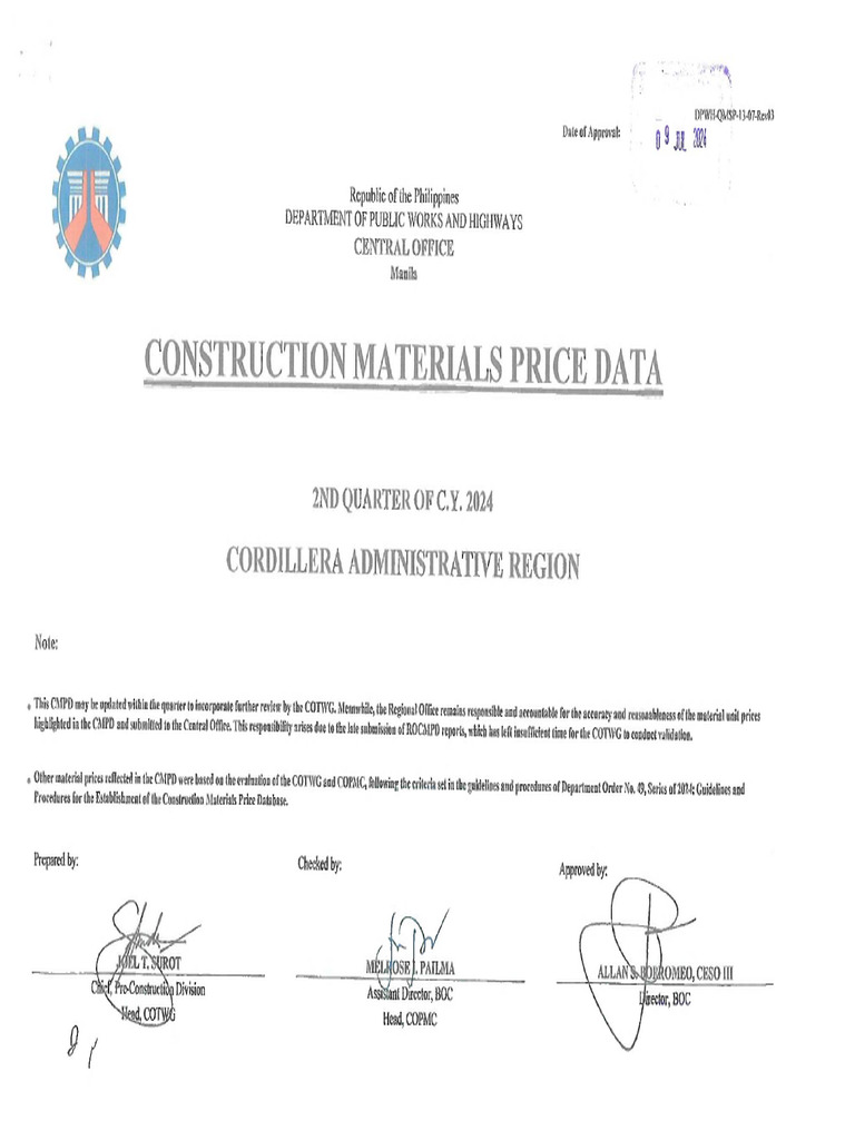 material unit prices submitted to the Central Office. This is due to the late submission of the ROCMPD reports, resulting in insufficient time for the COTWG