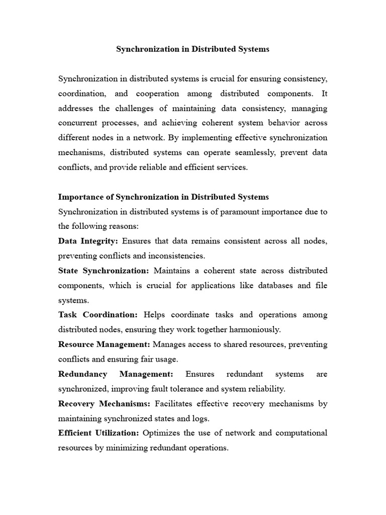 different nodes in a network. By implementing effective synchronization