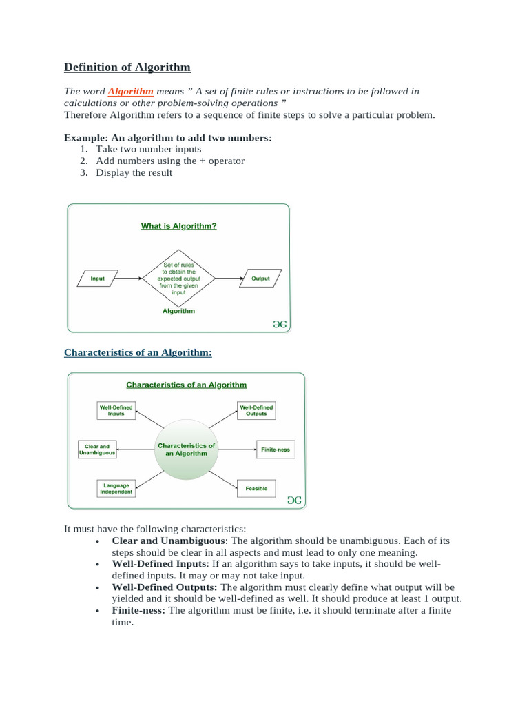 Well-Defined Outputs: The algorithm must clearly define what output will be