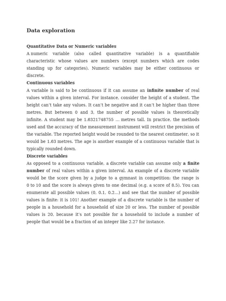 standing up for categories). Numeric variables may be either continuous or