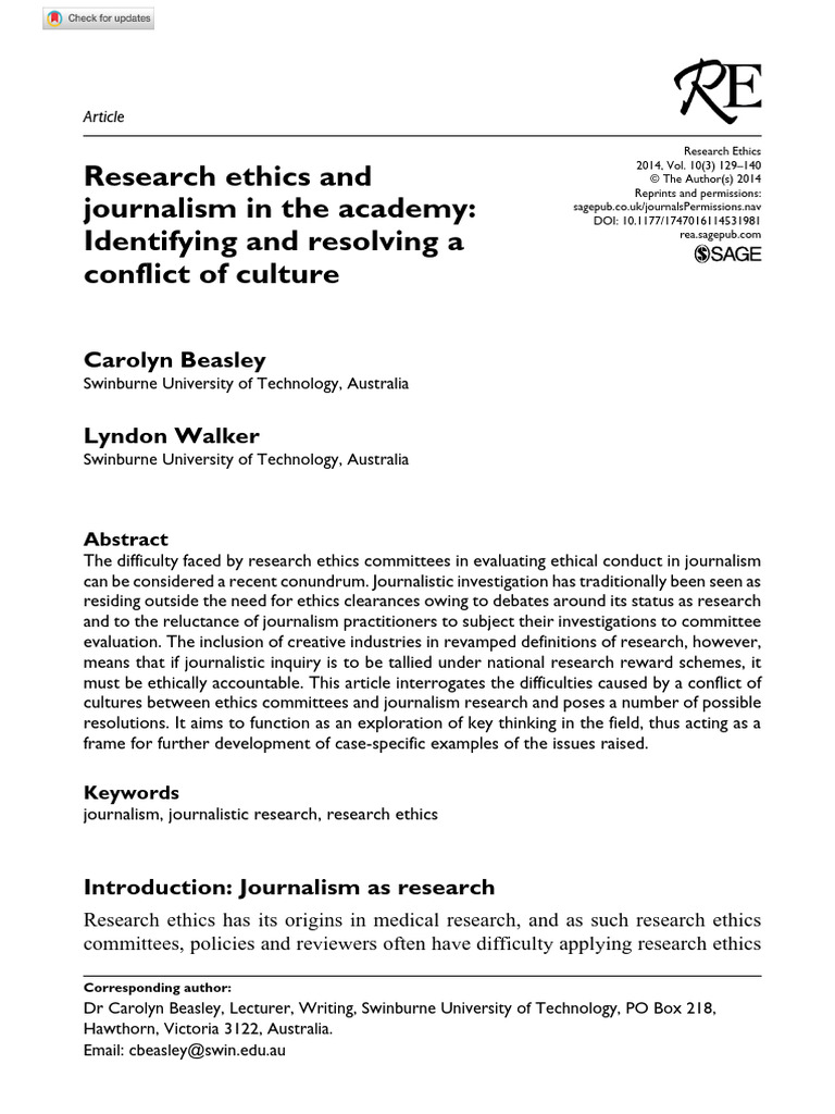 Richards I (2010) Uneasy bedfellows: Ethics committees and journalism research. Australian