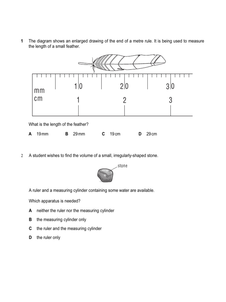 1 The diagram shows an enlarged drawing of the end of a metre rule.