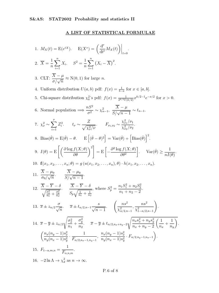 A LIST OF STATISTICAL FORMULAE