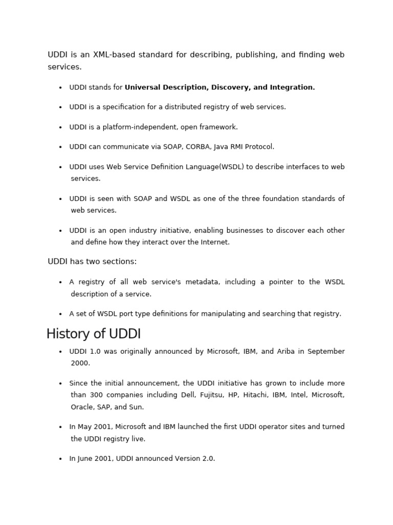 UDDI is an open industry initiative, enabling businesses to discover each other