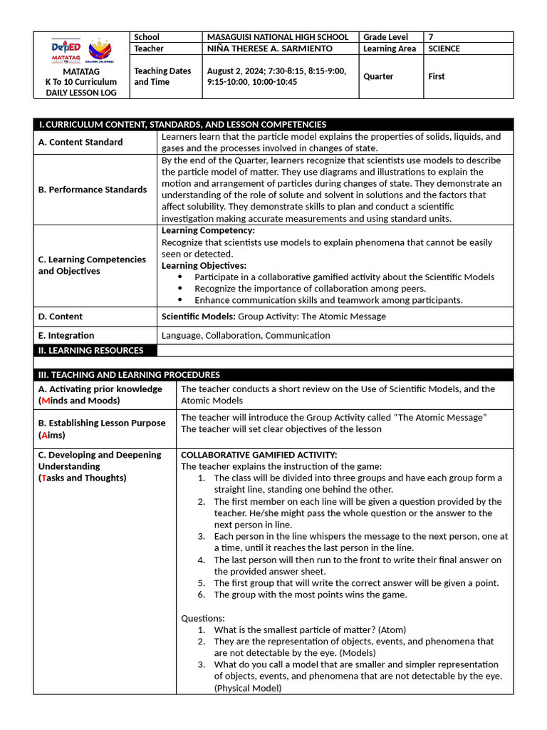 D. Content Scientific Models: Group Activity: The Atomic Message