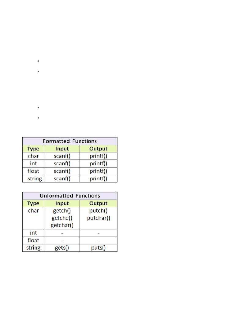 The unformatted console input/output functions deal with a single character or a string of characters. Let