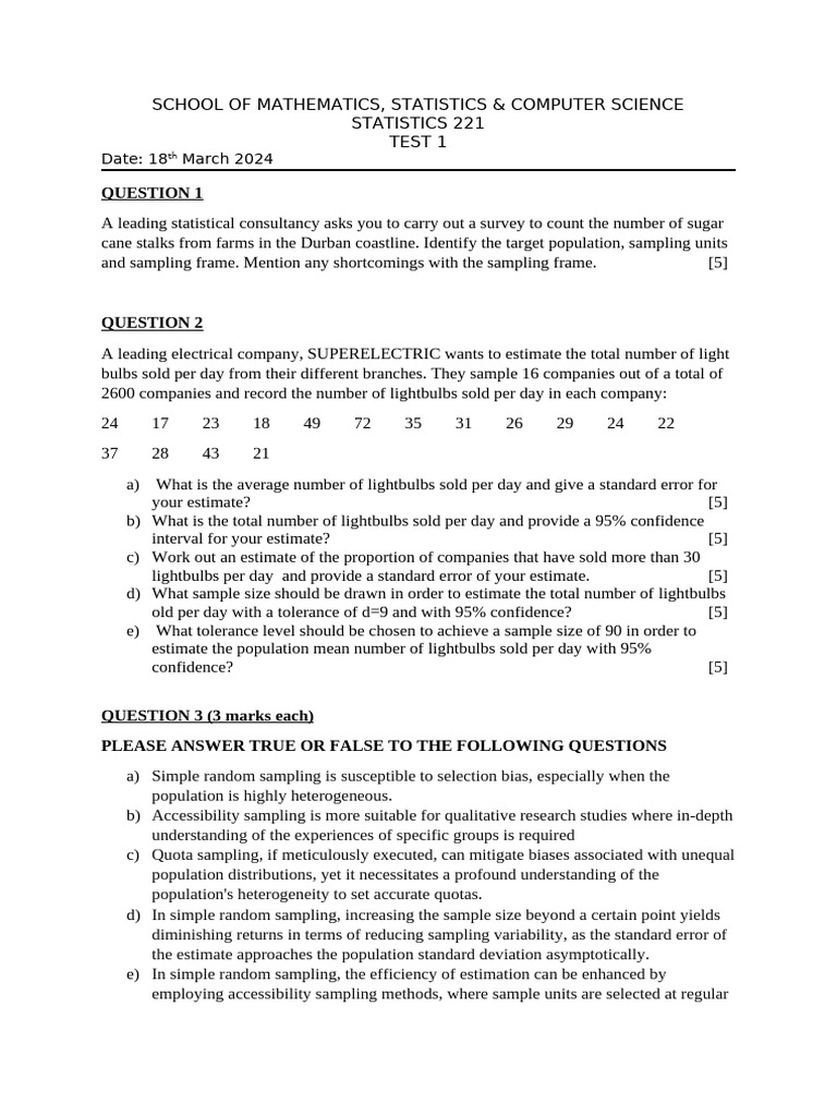 and sampling frame. Mention any shortcomings with the sampling frame. [5]