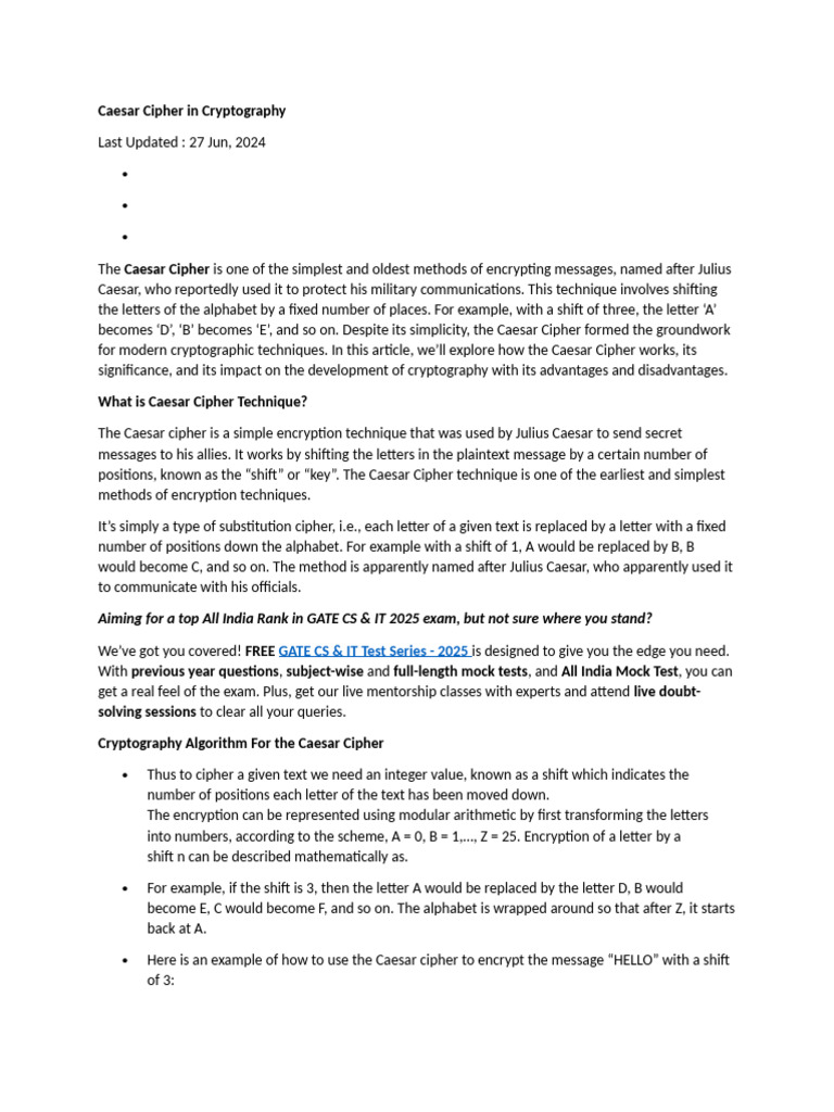 for modern cryptographic techniques. In this article, we’ll explore how the Caesar Cipher works, its