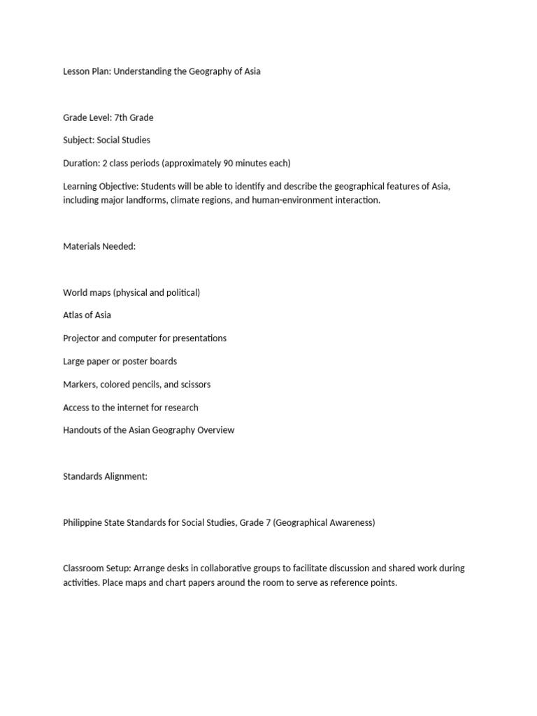today about Asia’s geography?” Write their answers on the board for future reference.
