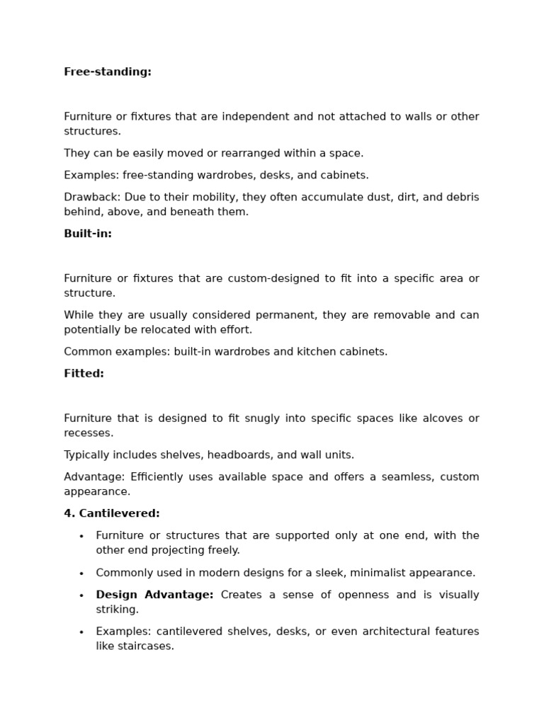 Examples: free-standing wardrobes, desks, and cabinets.
