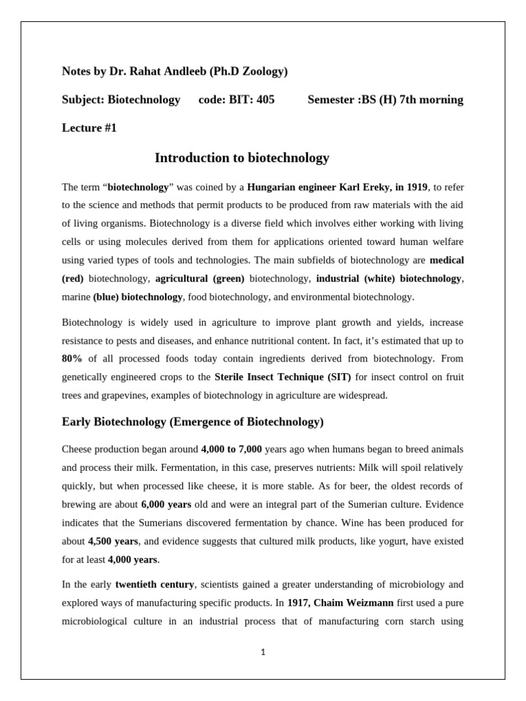 humans. What we think of as modern biotechnology began around the end of the nineteenth