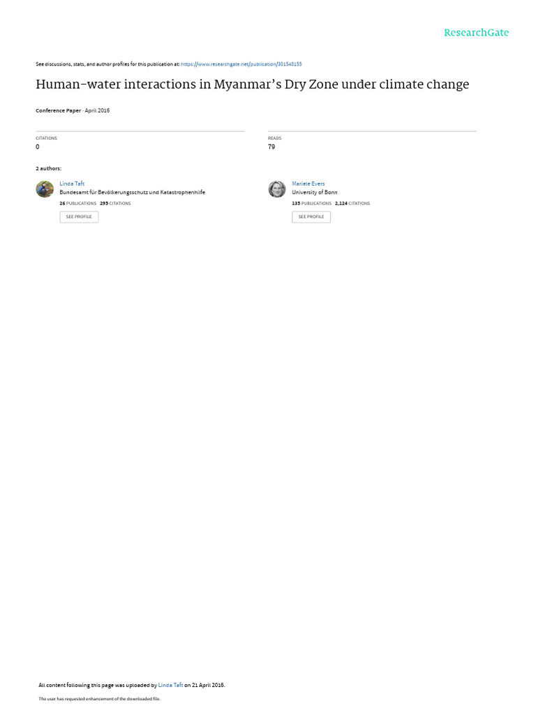 tions and to elaborate possible future scenarios for Myanmar’s Dry Zone. It is not well studied yet how current