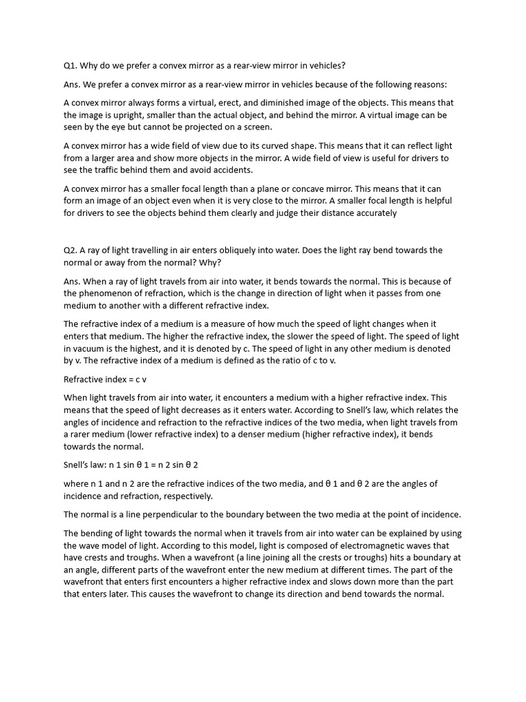 Q1. Why do we prefer a convex mirror as a rear-view mirror in vehicles?
