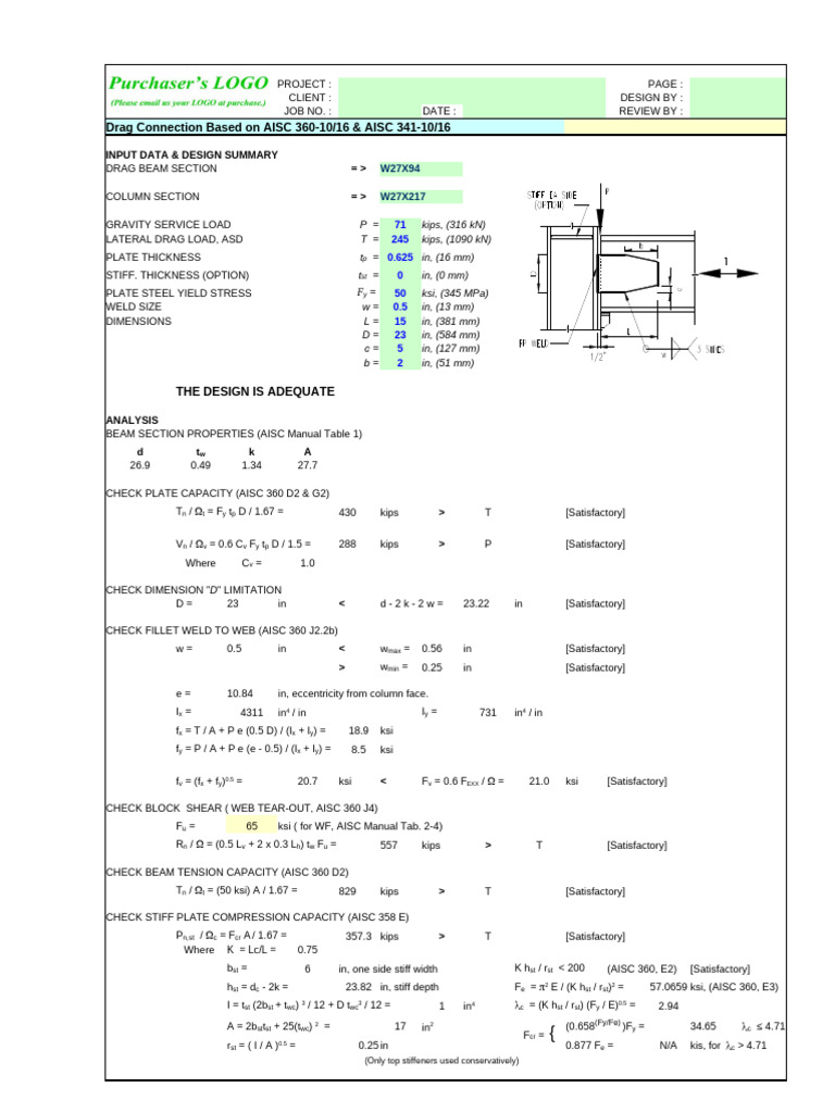 Drag Connection Based on AISC 360-10/16 & AISC 341-10/16