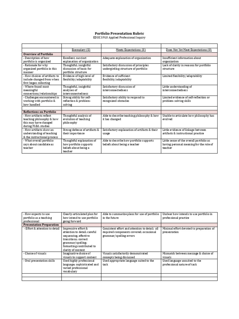Portfolio Presentation Rubric
