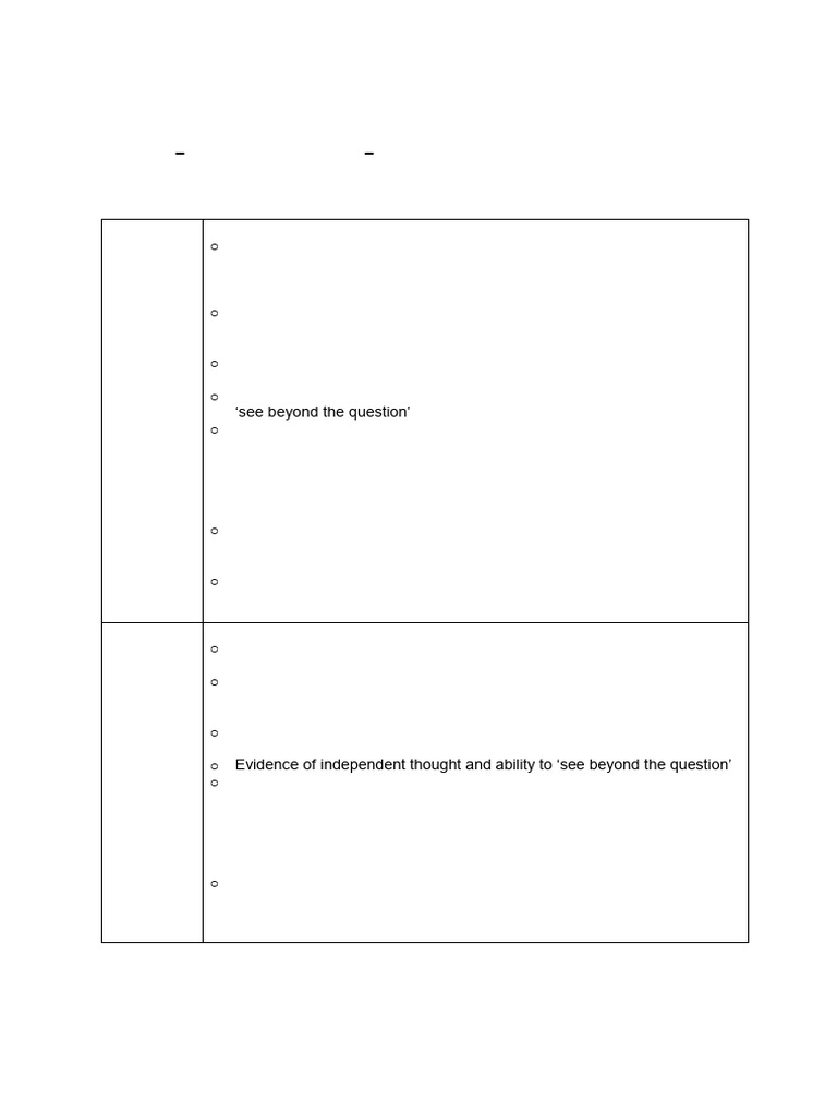 o Evidence of independent thought and ability to ‘see beyond the question’