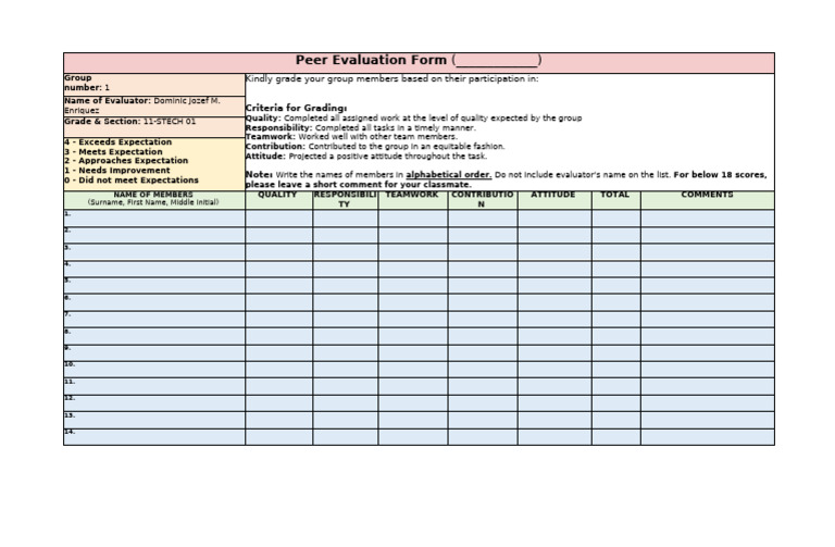 Grade & Section: 11-STECH 01 Quality: Completed all assigned work at the level of quality expected by the group