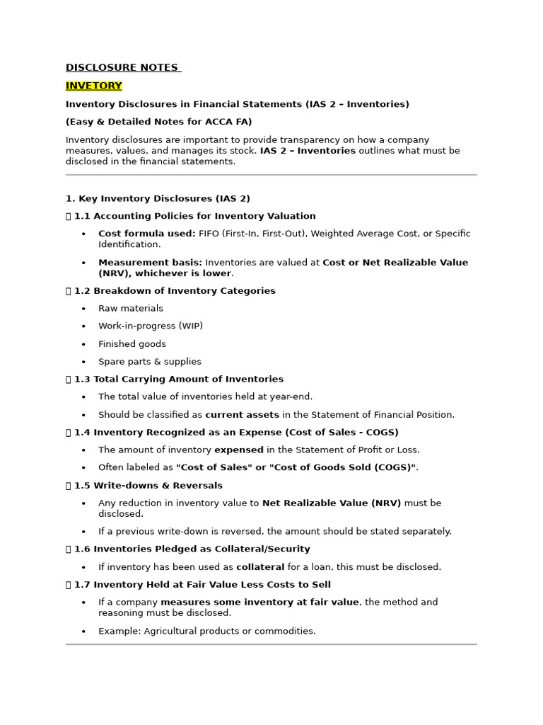 1. Key Inventory Disclosures (IAS 2)