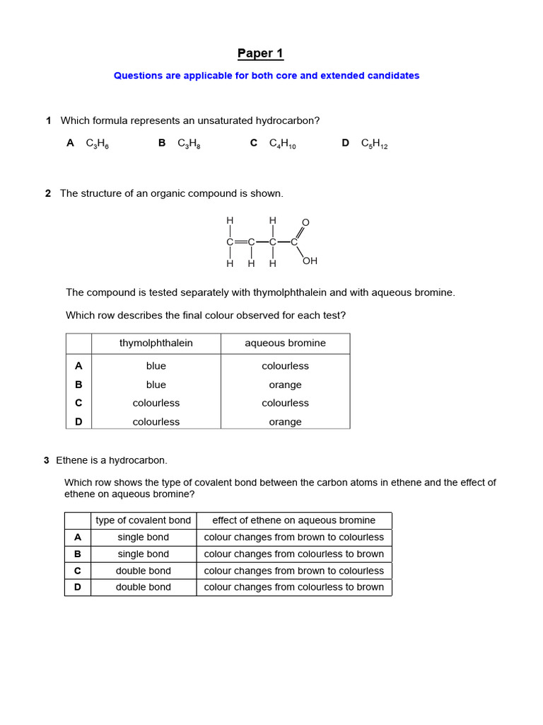 11.5 Alkenes - CAIE Chemistry IGCSE PhysicsAndMathsTutor.
