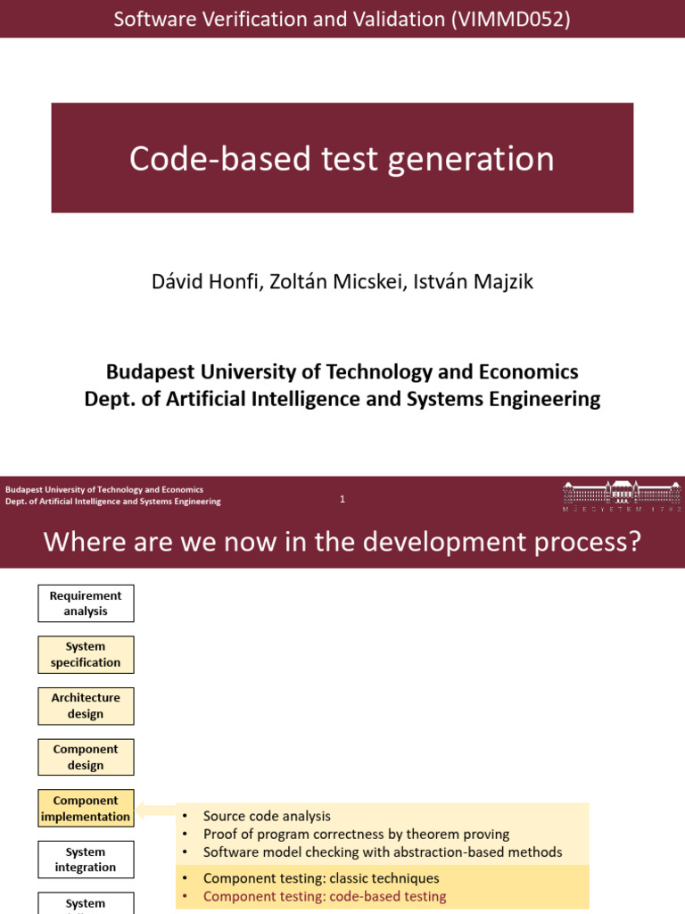 Software Verification and Validation (VIMMD052)