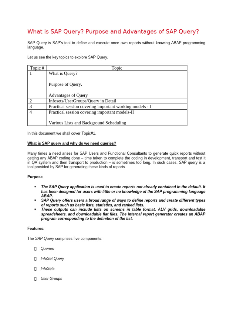 What is SAP Query? Purpose and Advantages of SAP Query?