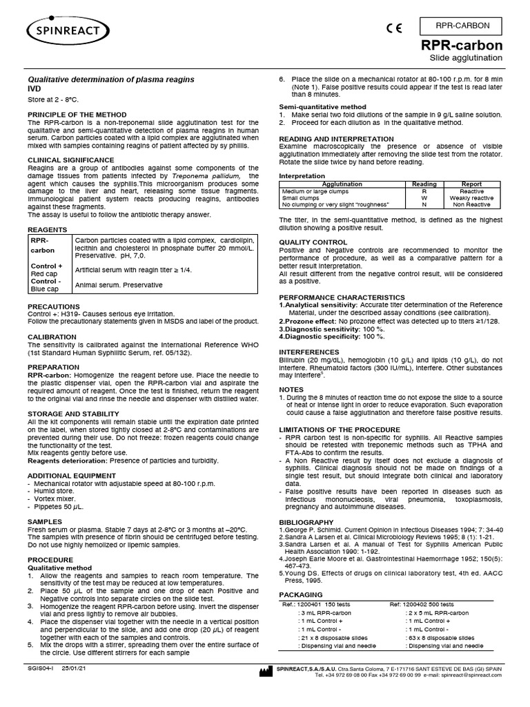 prevented during their use. Do not freeze: frozen reagents could change - RPR carbon test is non-specific for syphilis. All Reactive samples