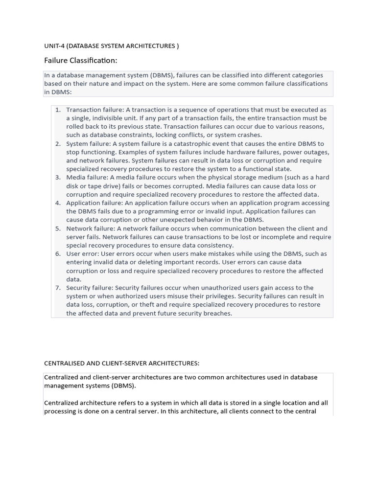 In a database management system (DBMS), failures can be classified into different categories