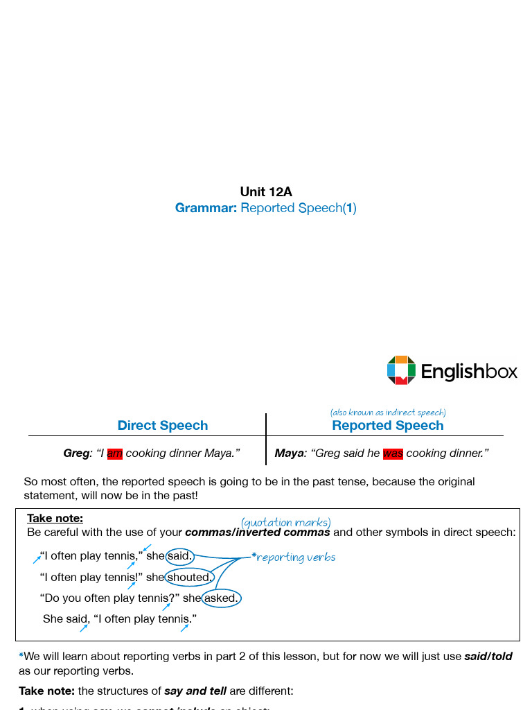 Direct Speech Reported Speech