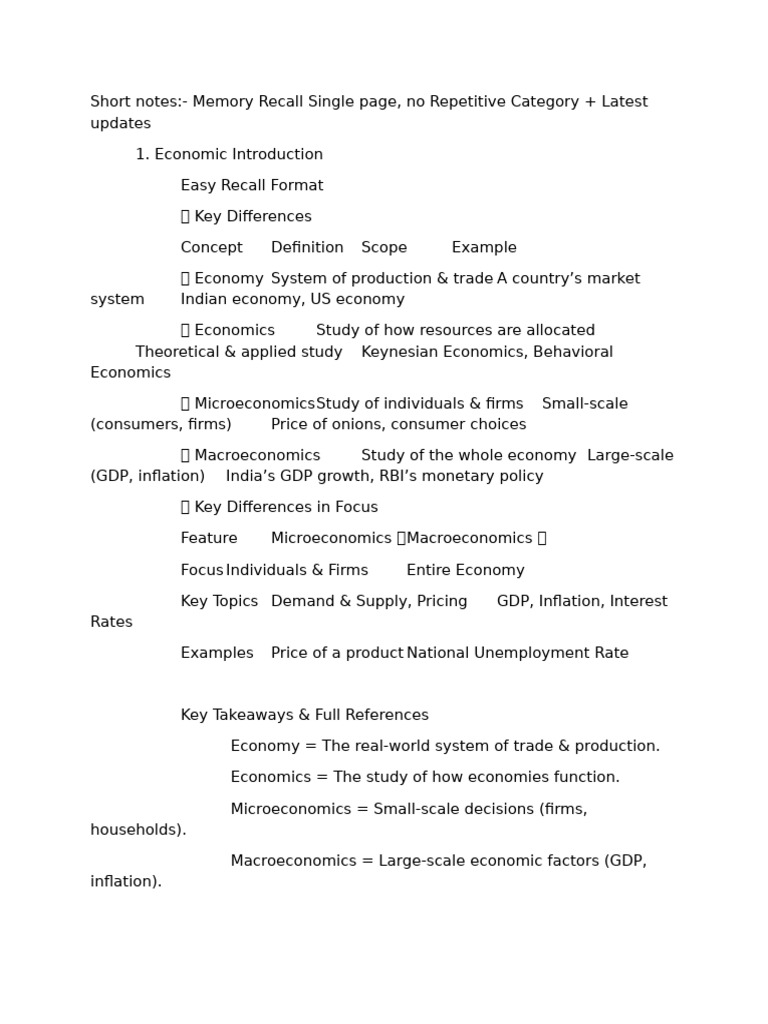 Short notes:- Memory Recall Single page, no Repetitive Category + Latest