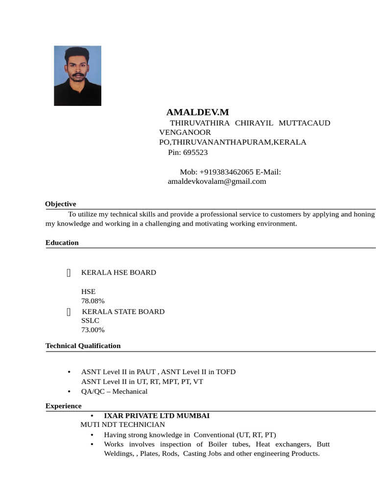 • Having strong knowledge and 2 year experiace in NDT field.