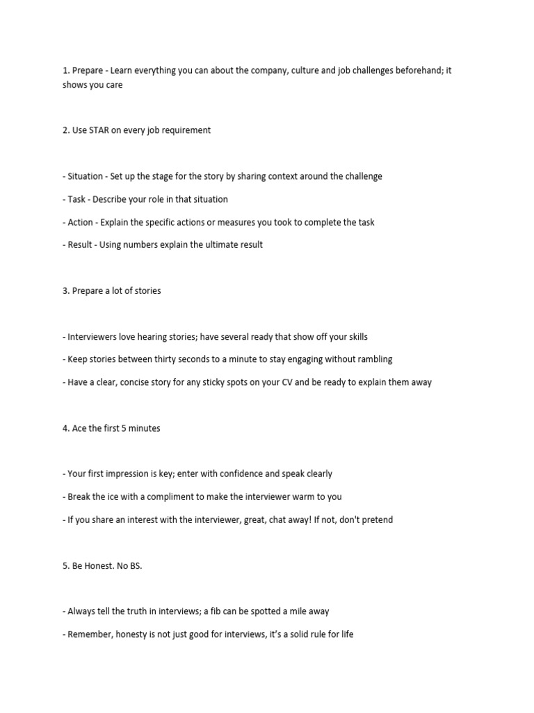 - Remember, honesty is not just good for interviews, it’s a solid rule for life
