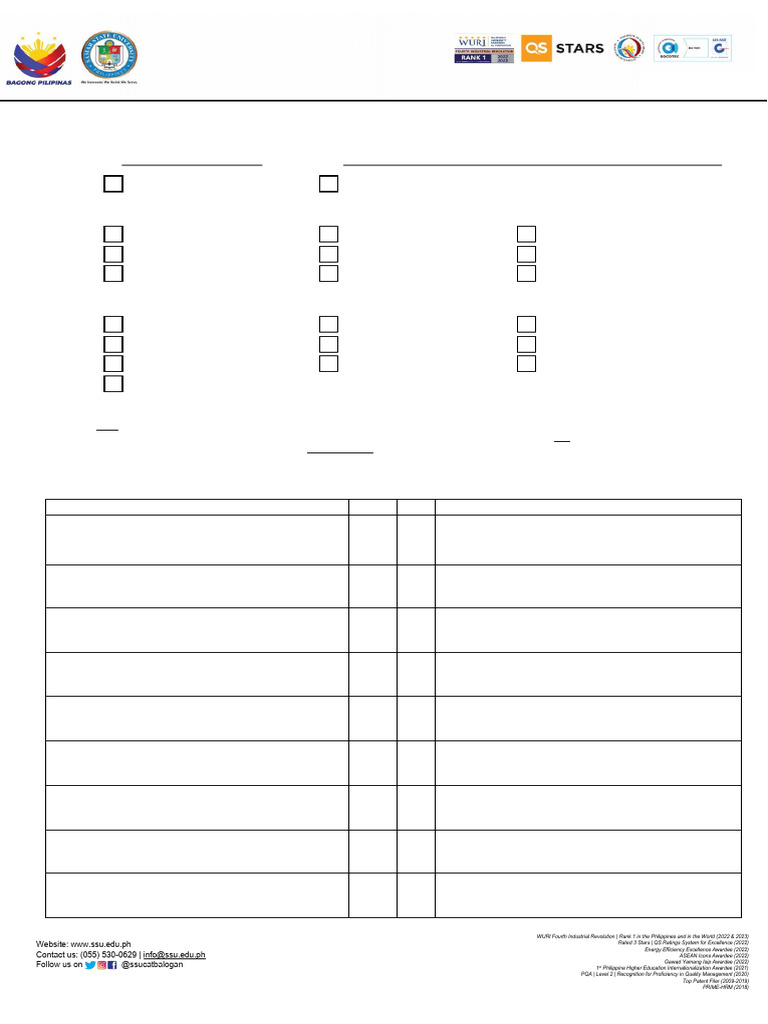 Website: www.ssu.edu.ph Rated 3 Stars | QS Ratings System for Excellence (2022)