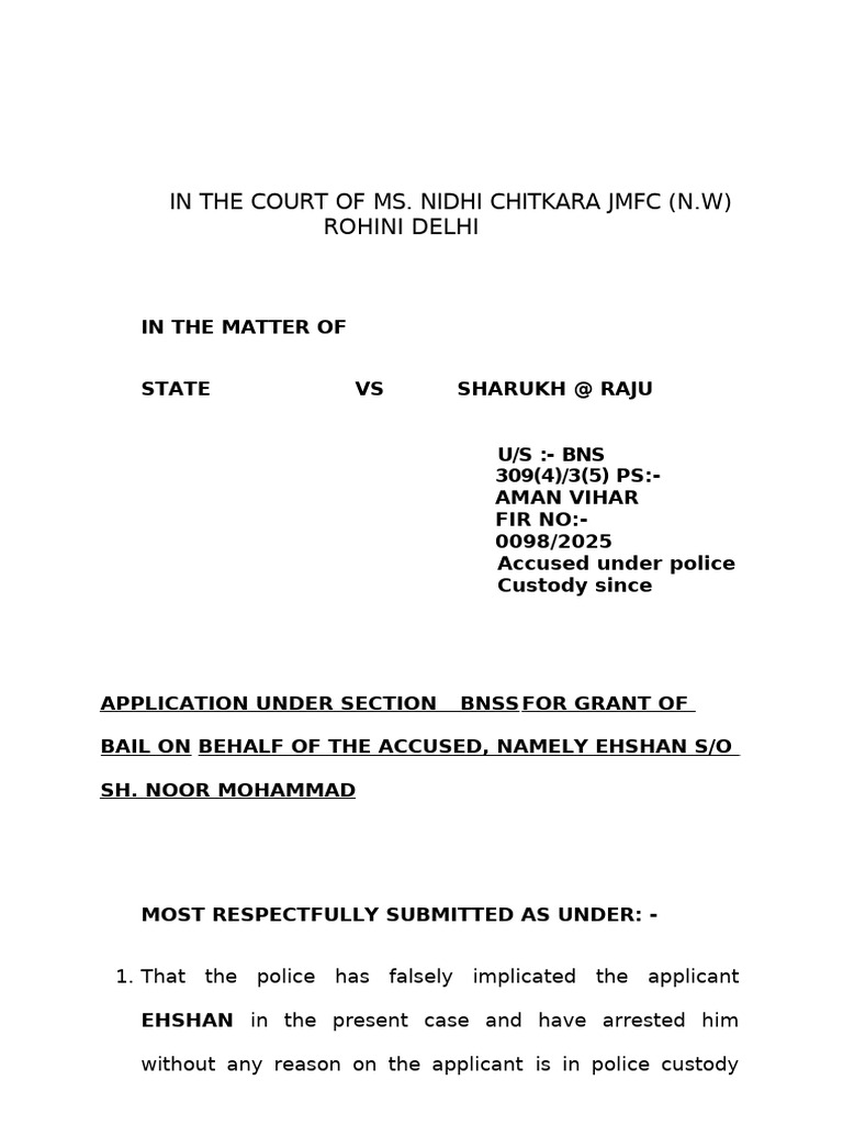 BAIL ON BEHALF OF THE ACCUSED, NAMELY EHSHAN S/O