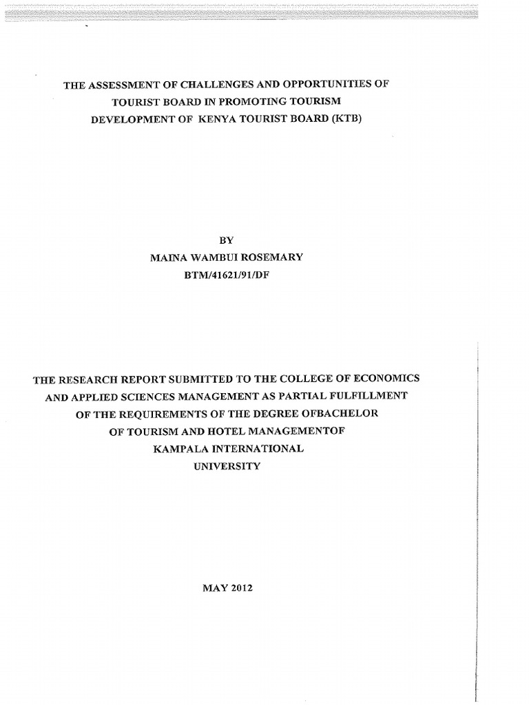 2.3 Kenya Tourist Board and Its Role .......................................................................... 9