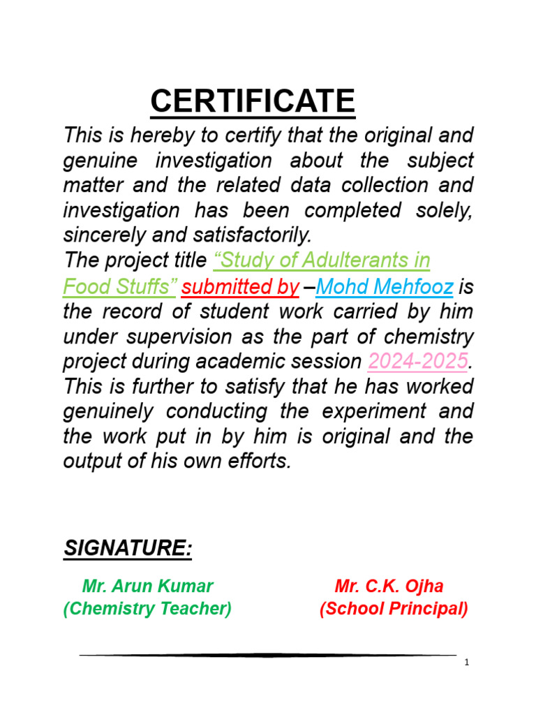 The project title “Study of Adulterants in