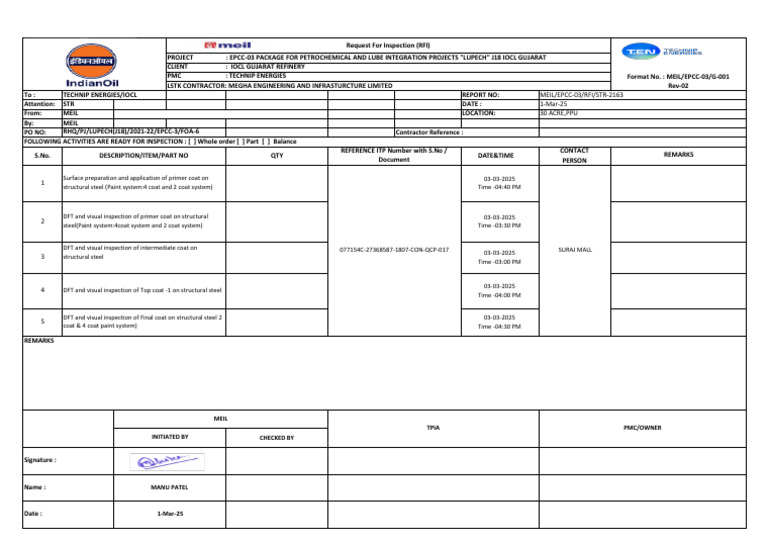 DFT and visual inspection of Final coat on structural steel 2 03-03-2025