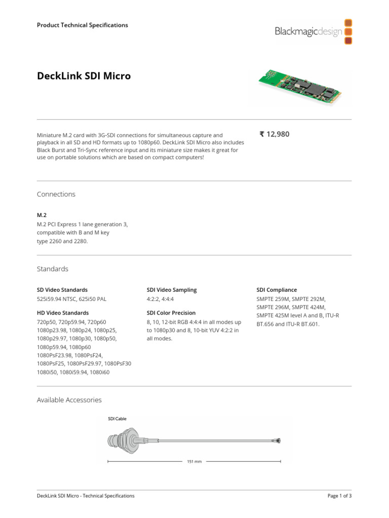 Miniature M.2 card with 3G‑SDI connections for simultaneous capture and ₹ 12,980