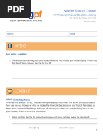 expenses. She will then make a judgment call about whether each expense is a Want or a Need.