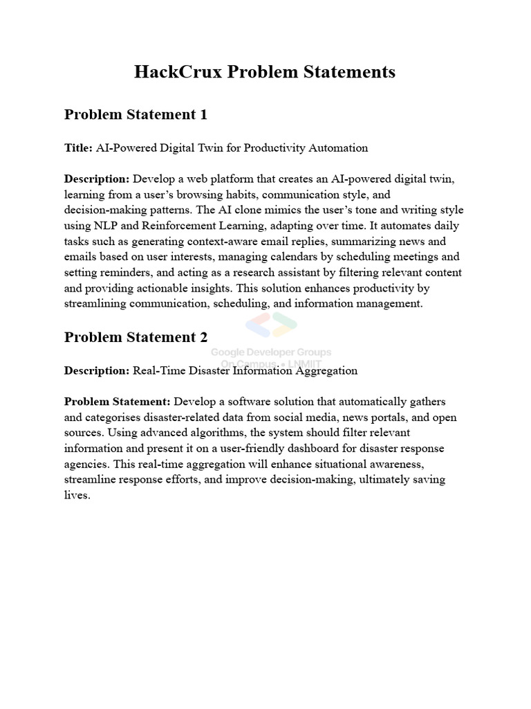 HackCrux Problem Statements