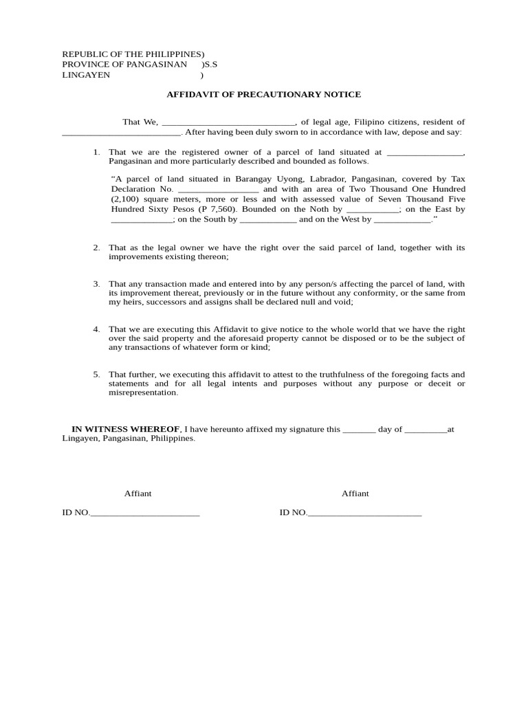 AFFIDAVIT OF PRECAUTIONARY NOTICE