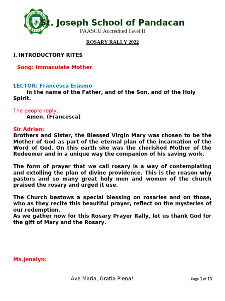 Hail Mary (Ms. Rizalyn & Sir Jerome) – 3 Hail Mary’s