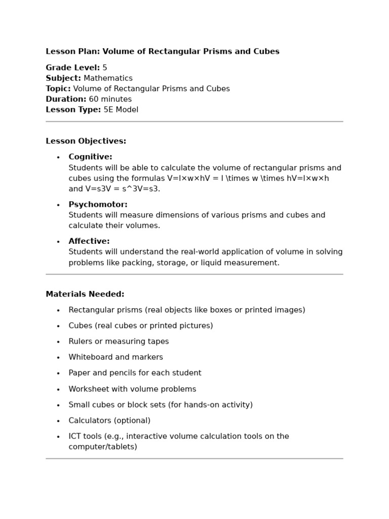 Lesson Plan: Volume of Rectangular Prisms and Cubes