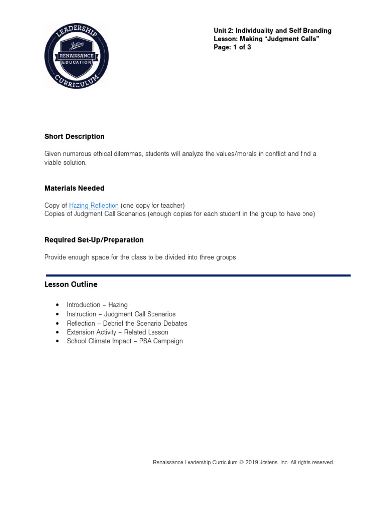 Renaissance Leadership Curriculum © 2019 Jostens Inc. All rights reserved.