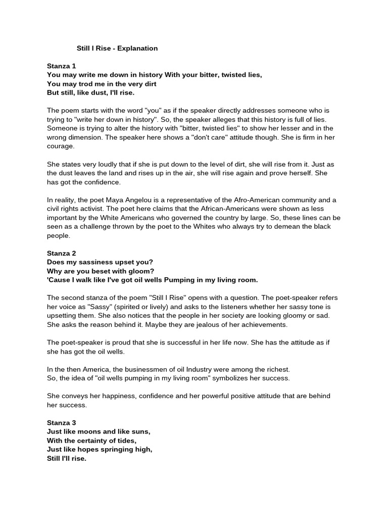 tides. "Still I'll rise" is the promise she makes and the challenge she poses.