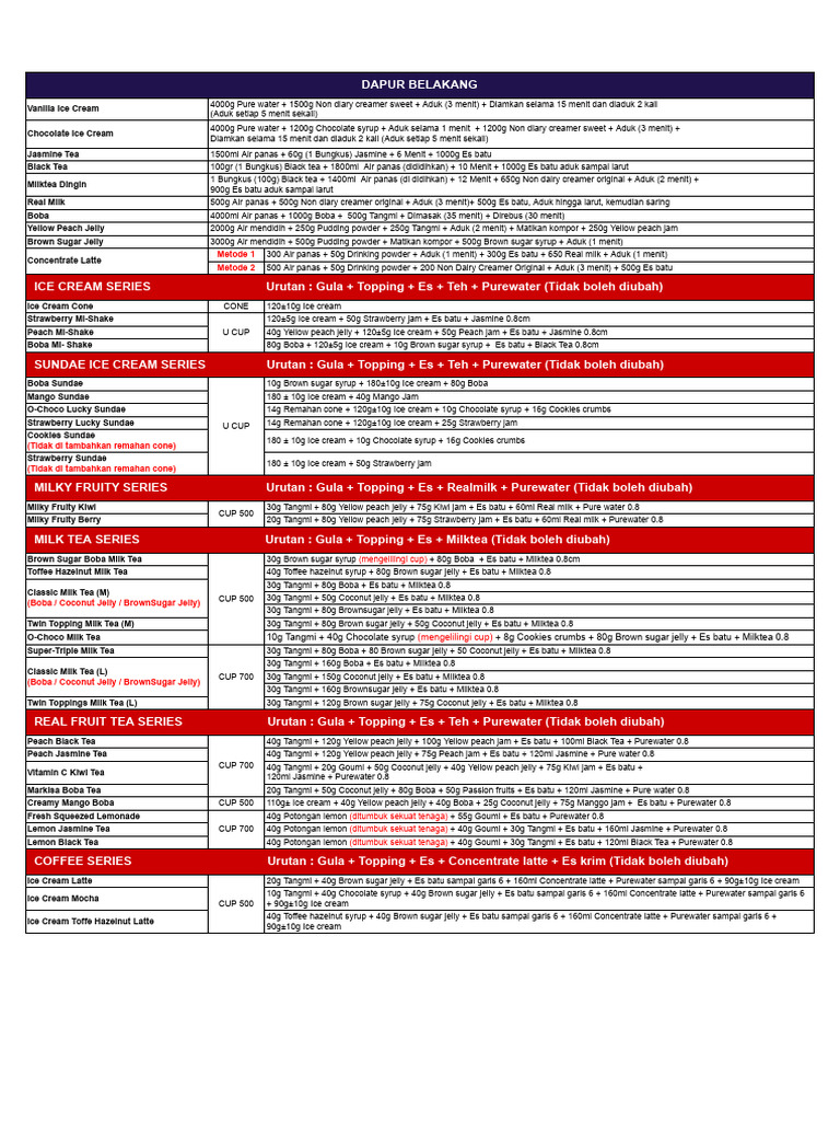 MILK TEA SERIES Urutan : Gula + Topping + Es + Milktea (Tidak boleh diubah)