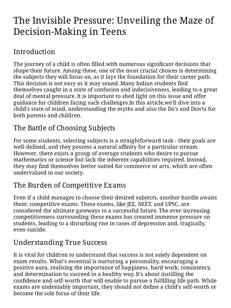 In the Indian education system, the decision-making process for students is a