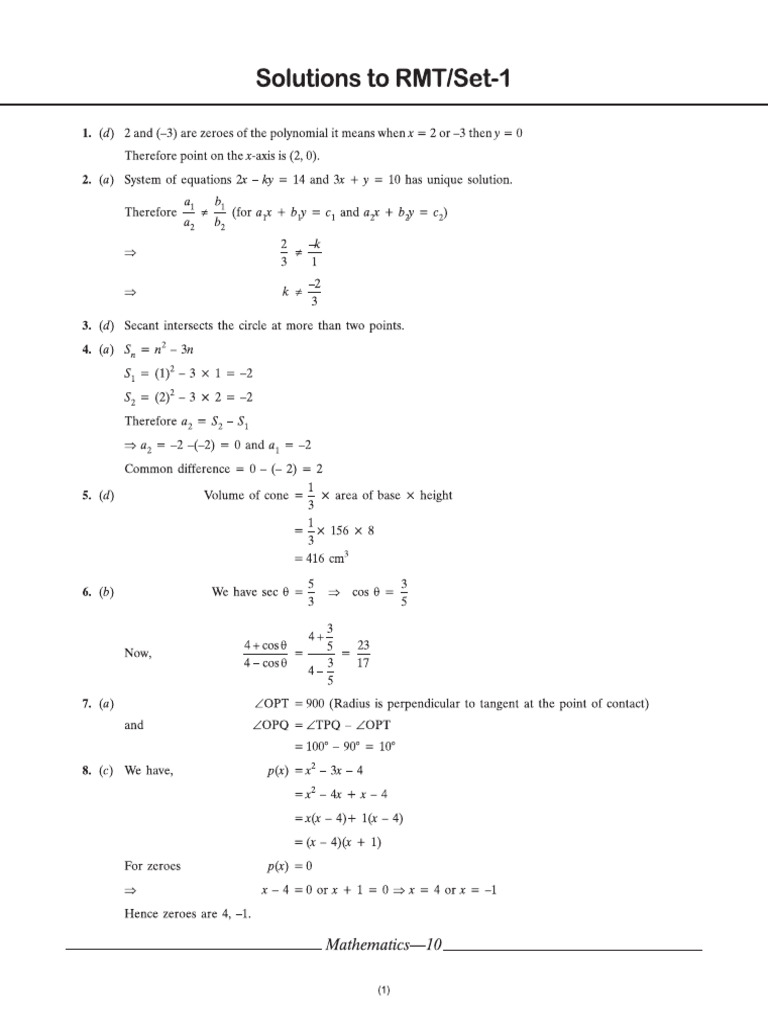 Solutions to RMT/Set-1