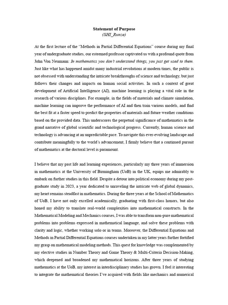 my heart remains steadfast in mathematics. During the three years at the School of Mathematics