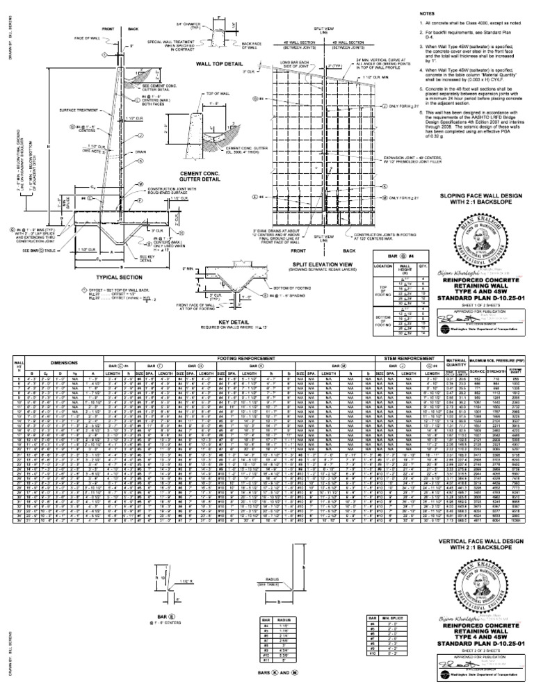 Reinforced Concrete Retaining Wall Plan