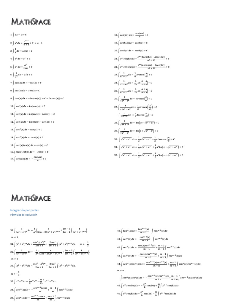 𝟑𝟎. ∫ √𝒂𝟐 − 𝒙𝟐 𝒅𝒙 = 𝒙√𝒂𝟐 − 𝒙𝟐 + 𝒂𝟐 𝒂𝒓𝒄𝒔𝒆𝒏 ( ) + 𝑪